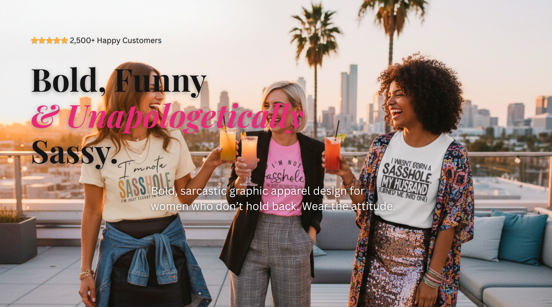 Explore our signature styles, from funny t-shirts for women in our Sasshole® collection to playful and personality-packed funny toddler shirts and baby outfits in our Little Sasshole™ collection — designed specifically for toddlers and babies with big attitudes. If clever humor and witty comebacks are more your vibe, our sassy shirts for women in our Sassy & Smartassy™ collection deliver the perfect mix of style, humor, and confidence.