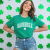 Featuring a bold varsity-style “Sasshole®” graphic with a lucky shamrock accent, this t-shirt is made for women who like their holiday style strong, simple, and unapologetic. Perfect for parades, pub crawls, casual hangs, or everyday wear when you’re feeling lucky and loud.